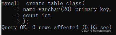 mysql> create table class(