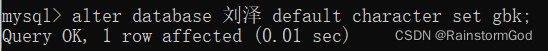 alter database 数据库名 default character set gbk;