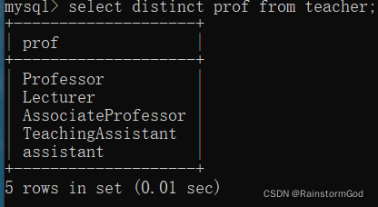 select distinct 字段名from表名;