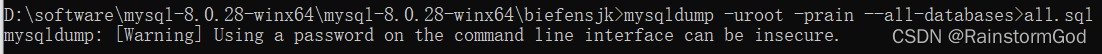 mysqldump -u用户名 -p密码 --all-databases>文件名.sql