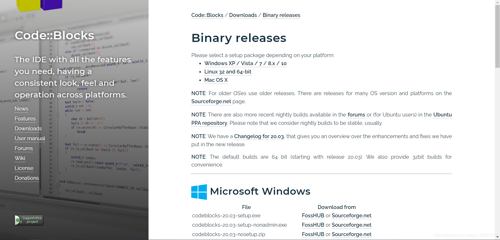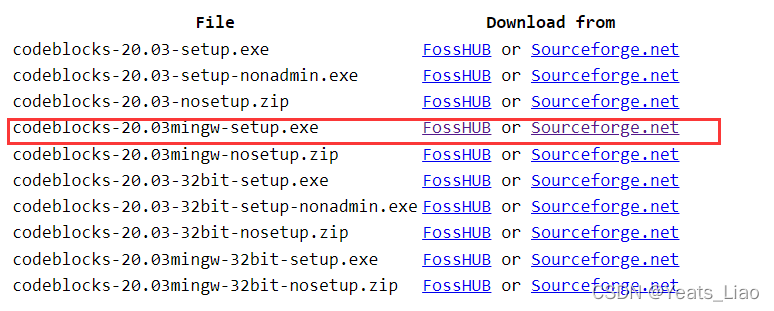 codeblocks-20.03-setup.exe文件包括带有所有插件的Code ::Blocks。提供codeblocks-20.03-setup-nonadmin.exe文件是为了给在其计算机上没有管理员权限的用户带来方便。
