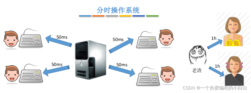计算机以 时间片 为单位 轮流为各个用户 / 作业服务 ,各个用户可通过终端与计算机进行交互。
