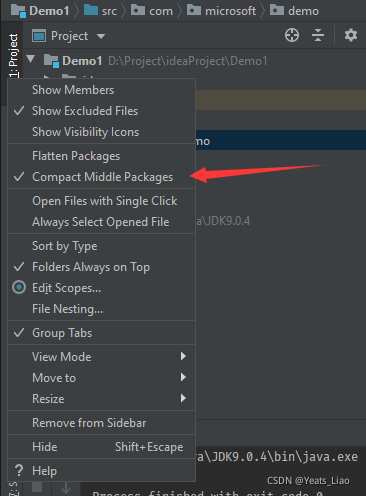 默认是将package层级以简洁显示的,非精简模式