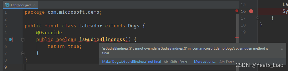 例如我们创建一个拉布拉多类继承Dogs类,并用final定义