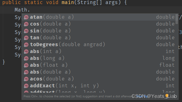 Math类在使用时不用new一个对象,只要Math.方法就可以使用这个方法,Math的方法都被定义为 static 形式,通过 Math 类可以在主函数中直接调用。