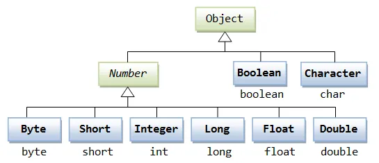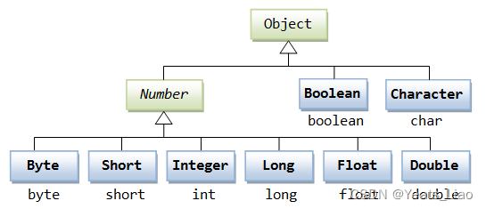 所有的包装类(Integer、Long、Byte、Double、Float、Short)都是抽象类 Number 的子类。