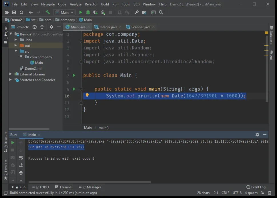 System.out.println(new Date());