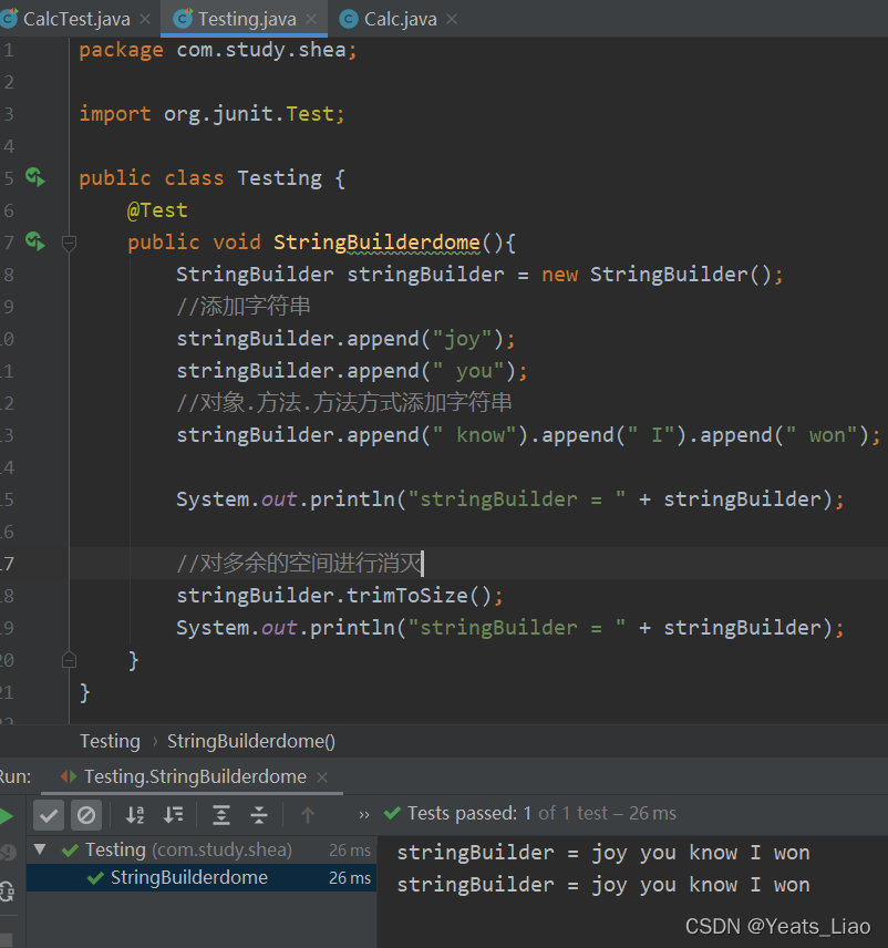 trimToSize()方法用于最小化用于字符的存储,去除未使用的空间,也可以用于将动态数组中的容量调整为数组中的元素个数