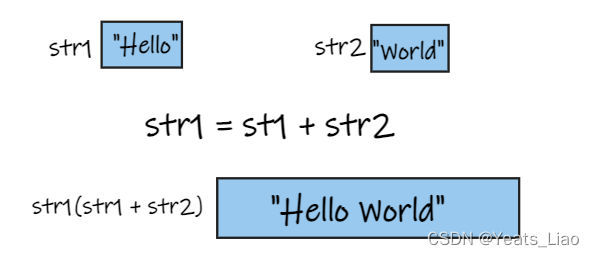 假设有两个String str1和str2,在创建这两个String类的时候计算机会给他们各自一块内存,当执行str1 = str1 + str2时,按逻辑是str1的内存内容被修改,内存只占了两块,但实际情况是创建了第三块内存str1(str1+str2)