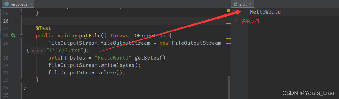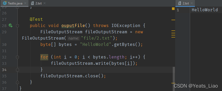 文件输出流,创建2.txt空文件,.write()方法读取整个字节数组,不需要使用for循环也能全部写入文件