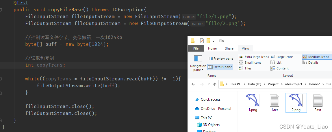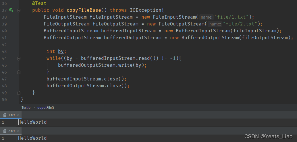 - 文件流的读取是一个一个字节读的,写也是一个一个字节写,是否可以将读文件的字节传输到写文件的字节流里面,相当于完成文件的复制呢?