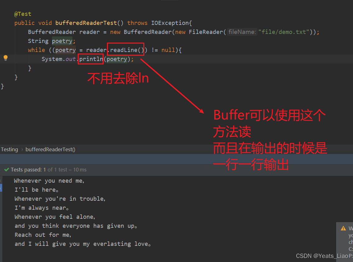 这两种流非常适合用来读取文本文件一类的文件,不需要再设置字节数组来进行读取,在写文件的时候也不需要获取字符串的字节流