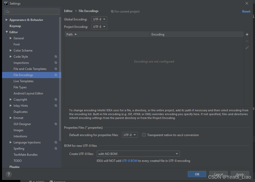 IDEA里面需要设置Encoding为中文编码UTF-8,企业里需要统一编码
