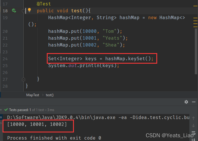 让Key以集合形式输出,.keySet()方法返回值是HashMap中Key值的集合