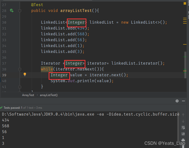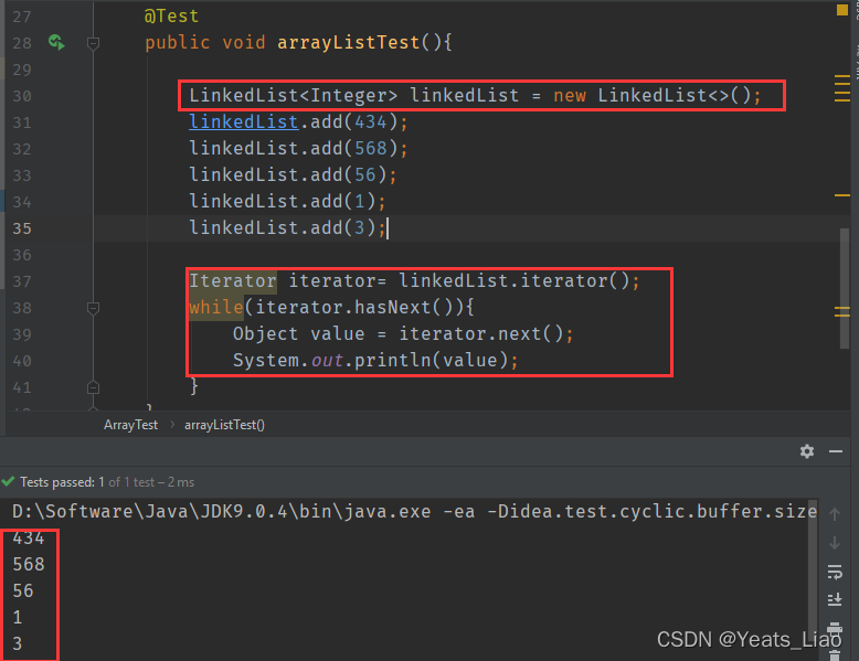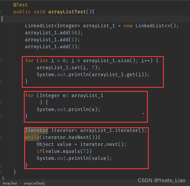迭代器Iterator,不管用于ArrayList还是LinkedList都可以迭代输出