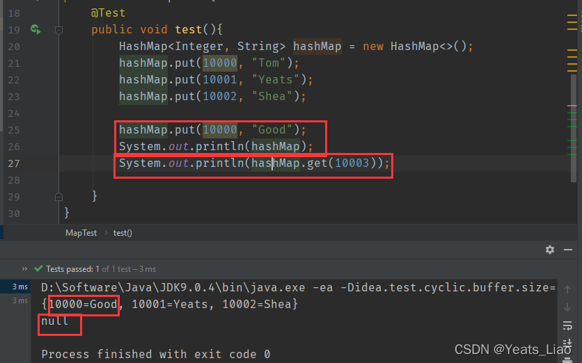 已经存在的键值对,再次.put()会替换原来的,.get()不存在的值会返回null