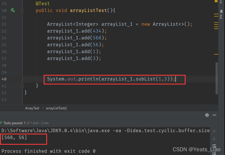 .subList()方法用于切割容器,需要注意截止于前一个元素