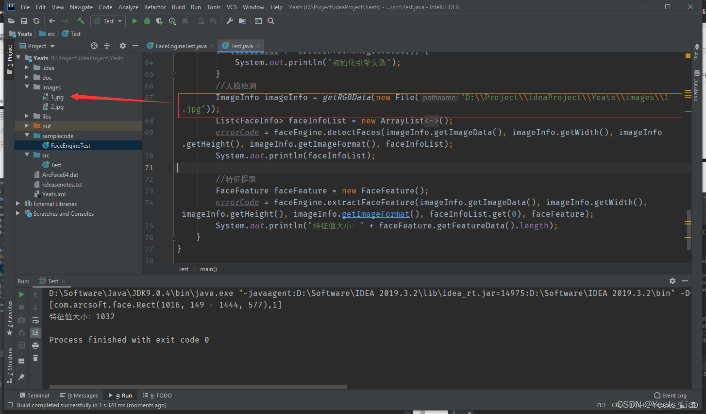 首次验证需要联网,运行人脸检测成功