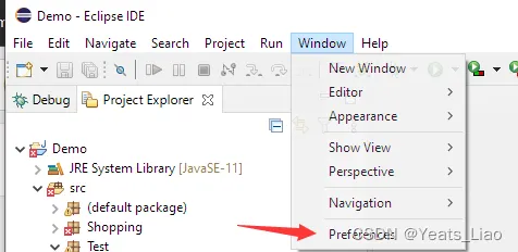 - 在Eclipse菜单中选择