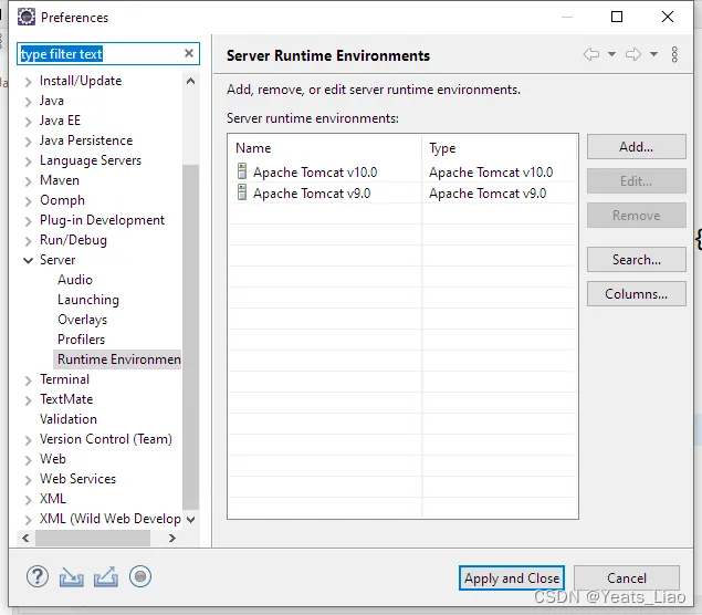 Runtime Environment配置Tomcat时,Window-Preferences里没有Server选项