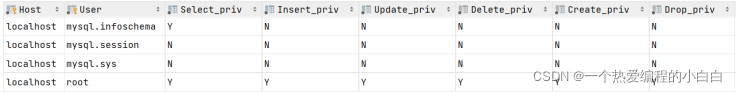 • 在MySQL中需要通过用户名@主机名的方式,来唯一标识一个用户。