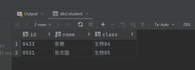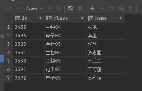 select id,class,name from student;