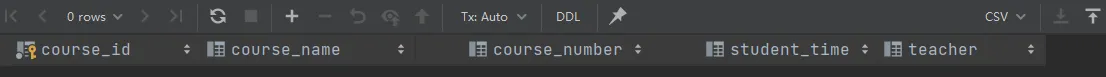drop table if exists student_course; create table student_course ( course_id varchar(10) comment '课程号', course_name varchar(15) comment '课程名', course_number double unsigned comment '学分数', student_time int unsigned comment '学时数', teacher varchar(10) comment '任课教师' ) comment '课程表'; select * from student_course;