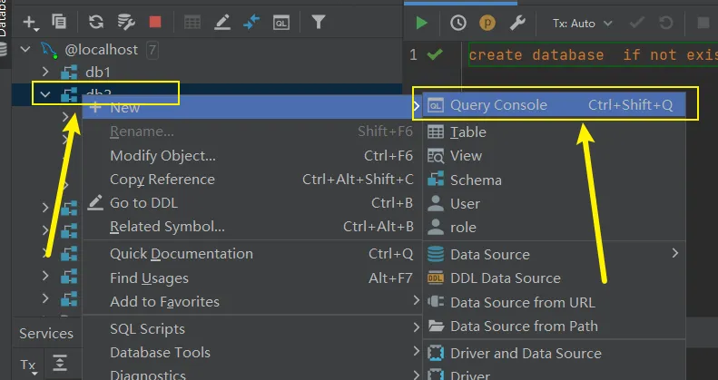 create database if not exists db2 ;