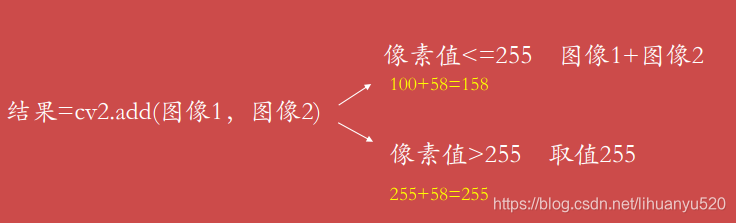 运算方式:结果=cv2.add(图像1,图像2)