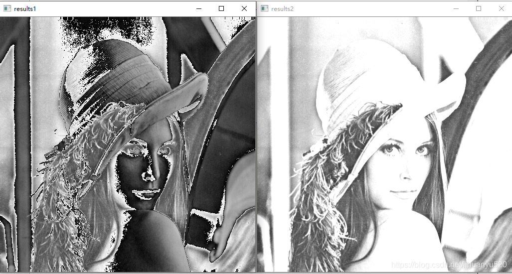#%%图像的加法 import cv2 import numpy as np img1 = cv2.imread(r"C:\Users\lihuanyu\Desktop\opencv\image\lena512.bmp") img2 = img1 results1 = img1+img2 results2 = cv2.add(img1,img1) cv2.imshow("results1",results1) cv2.imshow("results2",results2) cv2.waitKey(0) cv2.destroyAllWindows()