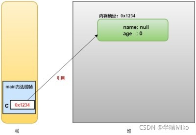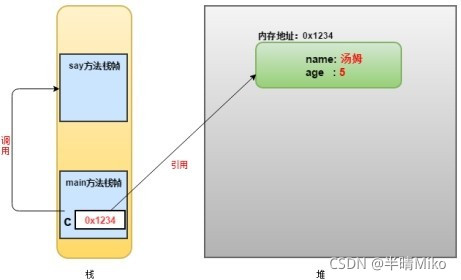 通过对象调用方法 c.say(); System.out.println(name+", "+age);