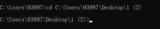 输入:cd C:\Users\93997\Desktop\1 (2)