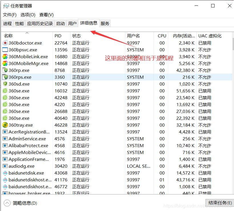 进程:正在运行的程序,比如你打开了qq和微信就是两个进程