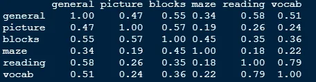 #定义covariences变量,取数据集中的cov列,因为ability.cov数据集是一个列表