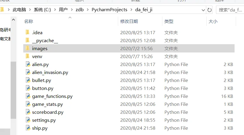 本游戏是书本《python编程从入门到实践》的实例,在下面我贴出来所有代码,包含注释,还有图片资源包,或者直接下载压缩包,下载链接: