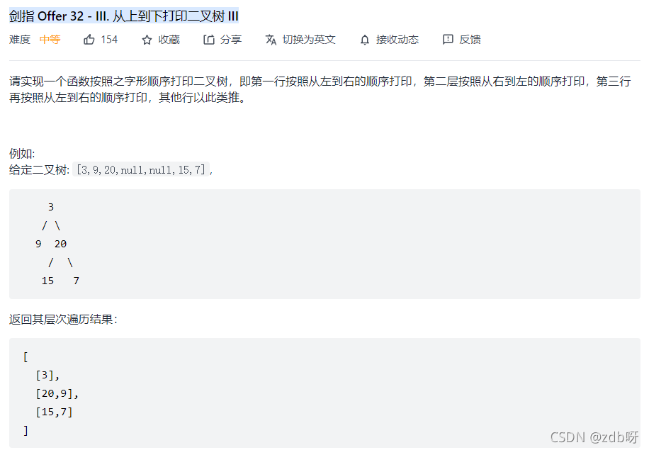 题目链接:剑指 Offer 32 - III. 从上到下打印二叉树 III