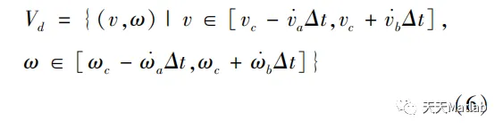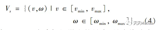 清扫机器人受硬件性能的约束,其最大、最小速度都被限制在一定范围内,所以清扫机器人允许的极限速度矢量集合Vs为: