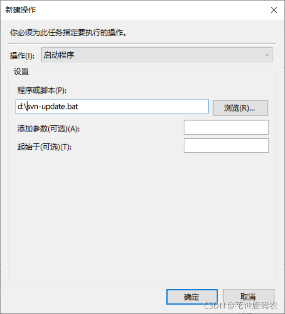 - 下面是一个简单的例子,每小时执行一次code-update.bat脚本,其他定时情况可参考: