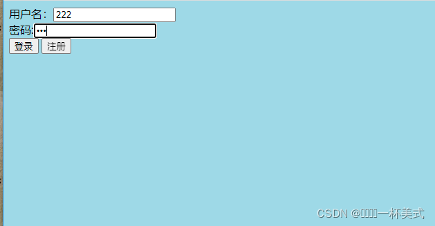 <%@ page language="java" contentType="text/html; charset=UTF-8" pageEncoding="UTF-8"%> <!DOCTYPE html> <html> <head> <meta charset="UTF-8"> <title>登录</title> <style> #a { width:50%; height:200px; border: 1px dashed ; background-color:lightyellow; text-align:center; } body{ background-color:lightblue; } </style> </head> <body> <form action="dologin.jsp"> 用户名:<input type="text" name="uname"><br> 密码:<input type="password" name="upwd"><br> <input type="submit" value="登录"> <input type="button" value="注册" onclick="javascript:location.href='register.jsp'"> </form> </body> </html>