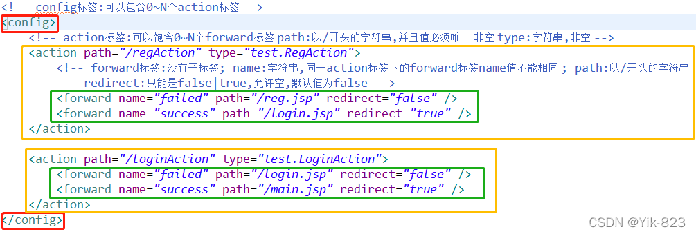 从图中得知,一个config里包含多个action元素,action里包含foward元素