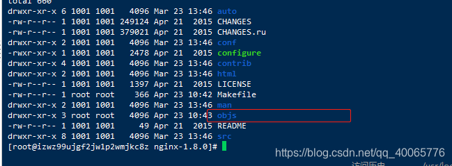 注意,不能使用 make install 命令,这样会导致重新安装 nginx,此时当前目录就会出现 objs 目录