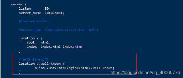 location /.well-known { alias /usr/local/nginx/html/.well-known; }