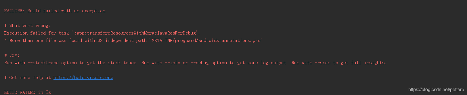 packagingOptions { exclude 'META-INF/proguard/androidx-annotations.pro' }