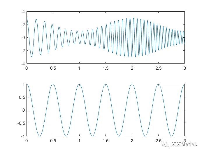 % x1 = (2+cos(2*pi*0.5*t)).*cos(2*pi*5*t+15*t.^2);