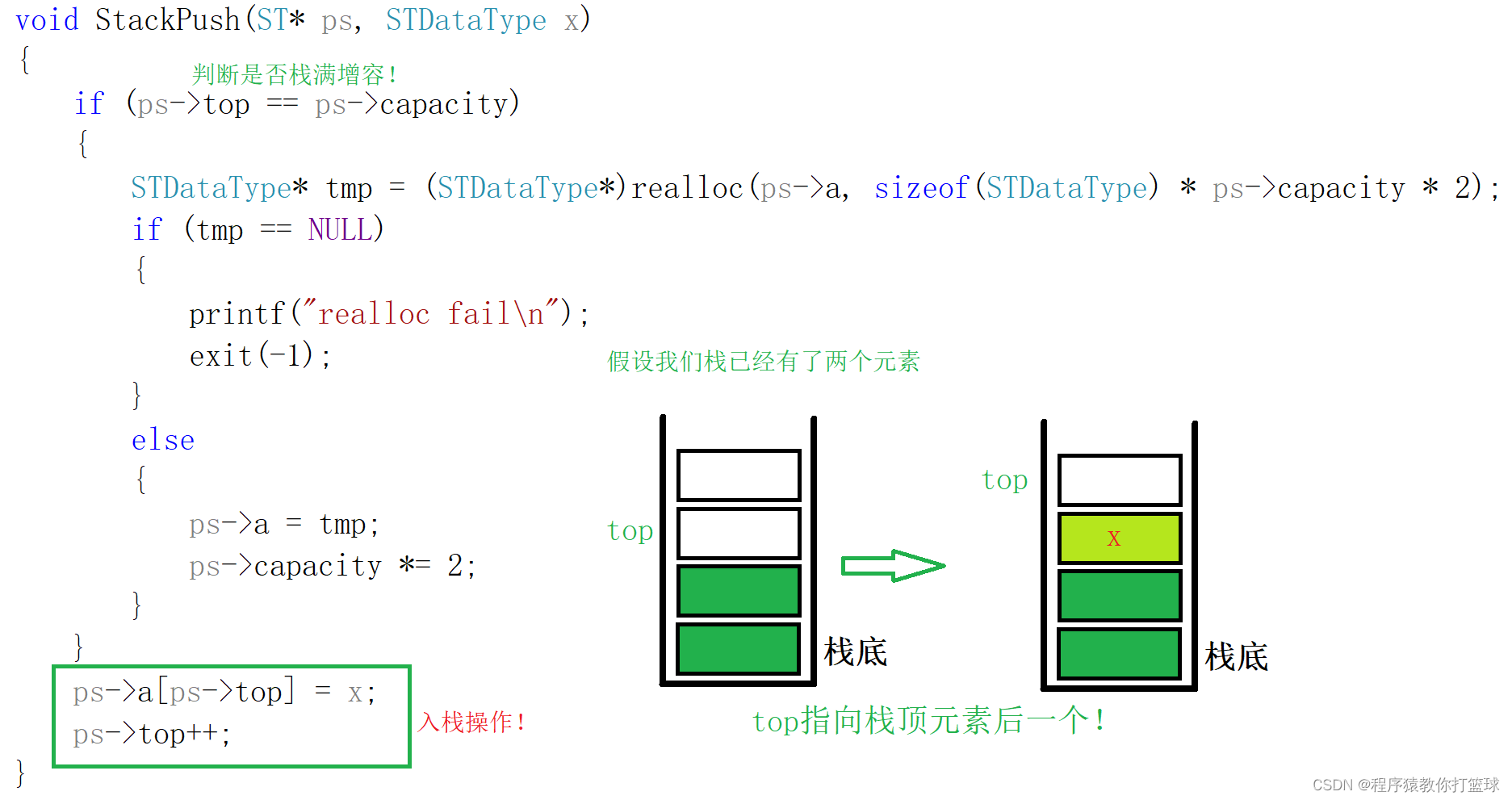 typedef int STDataType; typedef struct Stack { STDataType* a; int top; int capacity; }ST;