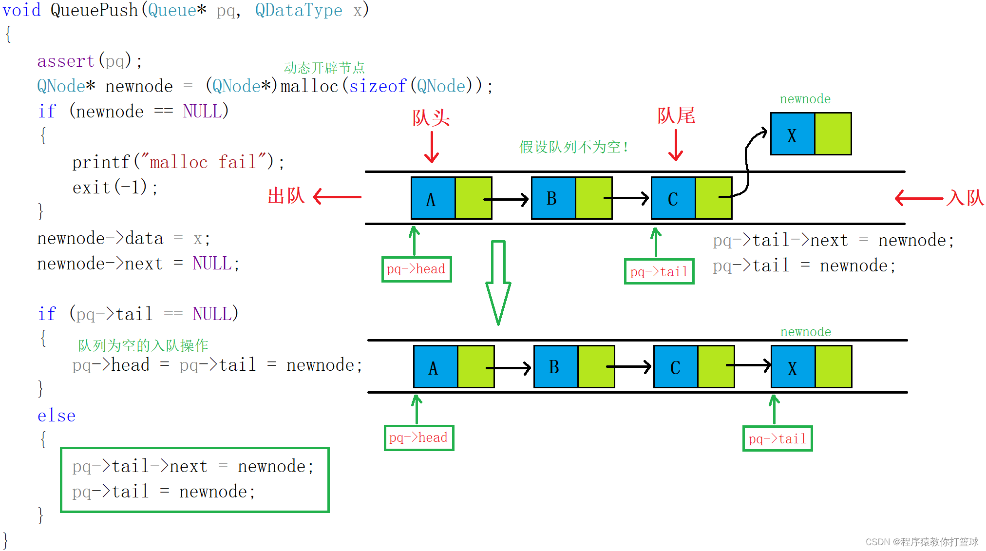 typedef int QDataType; typedef struct QueueNode { struct QueueNode* next; QDataType data; }QNode; typedef struct Queue { QNode* head; QNode* tail; }Queue;