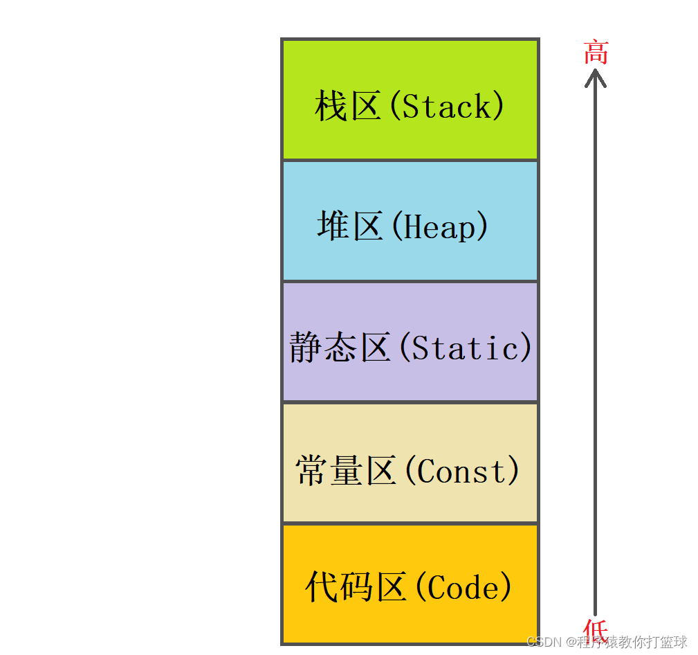 常量区:存放常量(比如比变量名字,非0的初始化值,const常量,字符串等),只读;
