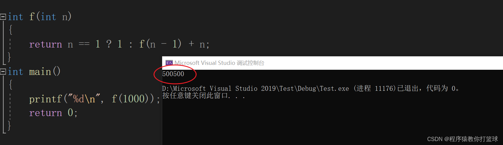 这是一个累加求和的递归函数,当我们发现累加求和到1000递归仍然能正常执行,我们接着改为10000看看是否还能正常运行?