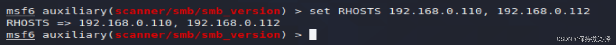 编辑 set RHOSTS 192.168.0.110, 192.168.0.112