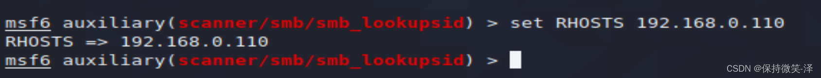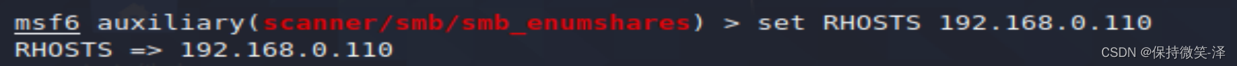 5.set RHOSTS 192.168.0.110 设置目标主机